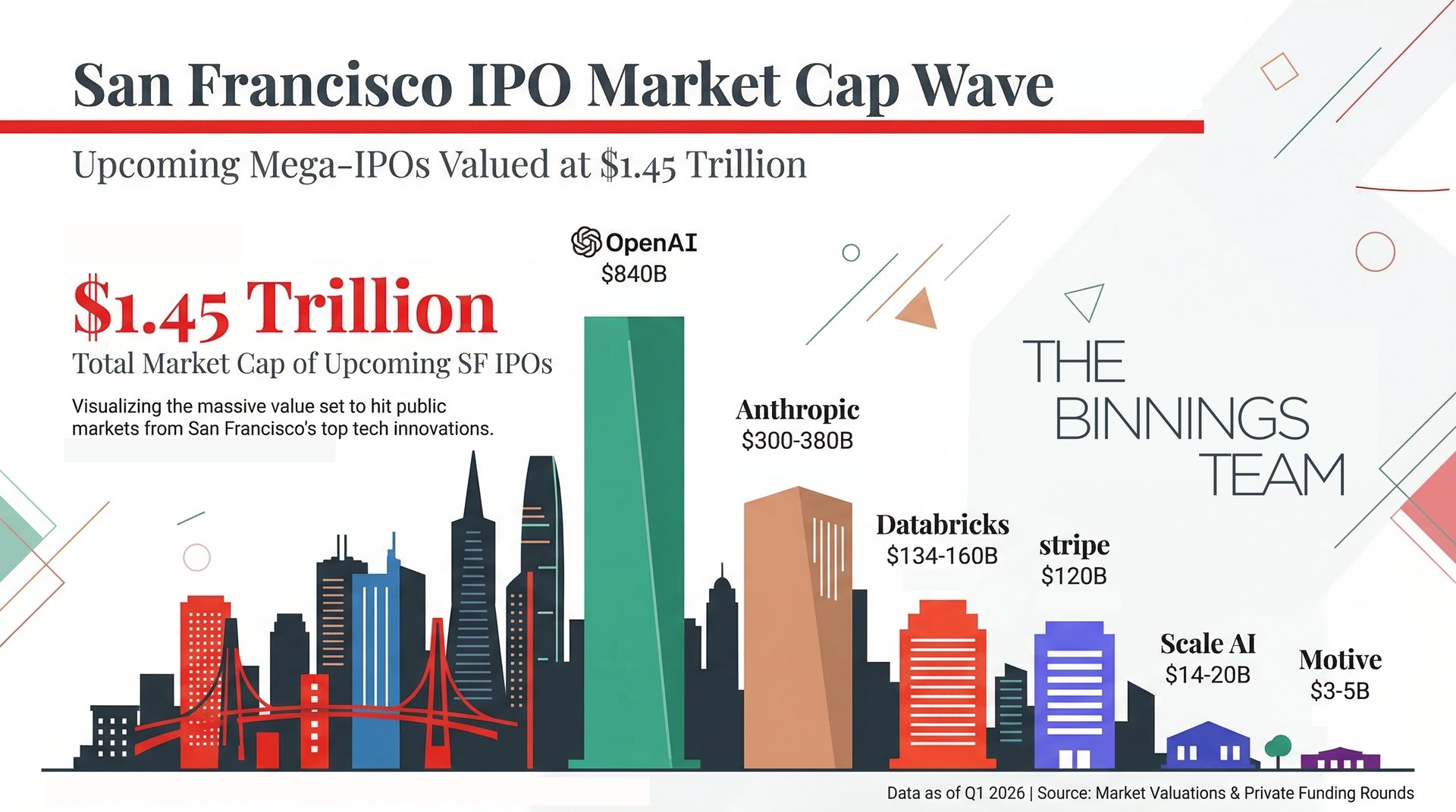 Based on current private valuations and public filings, over $1.5 trillion in newly created market capitalization could flow into the San Francisco and Greater Bay Area economy over the next 12 to 36 months through companies like Anthropic, OpenAI, Databricks, Stripe, and others. Now, the vast majority of that is enterprise value, not housing dollars. But even a small fraction of $1.5 trillion, when it lands in a supply-constrained housing market, translates to tens of billions of dollars in potential real estate demand.